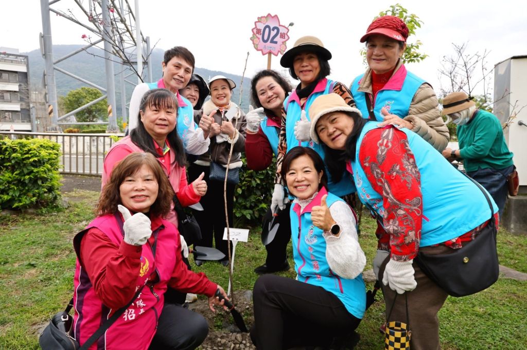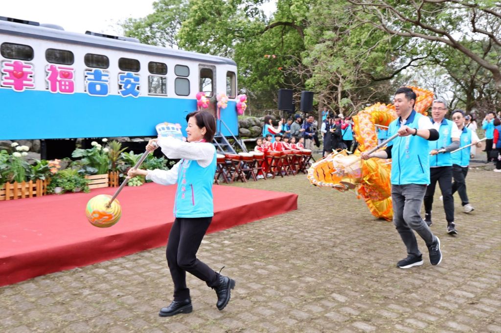 活動現場由鄉長游淑貞率領公所主管團隊創意舞龍繞場揭開序幕。游鄉長手持龍球引領前行,主管團隊接續舞動龍身繞行,「祥龍戲珠」象徵巡視鄉里、守護居民平安,也寓意新的一年為鄉親帶來祥瑞與祝福。隨後游鄉長與各界貴賓一同種下100棵山杜鵑與15棵山櫻花,為公園增添綠意與生機,象徵吉安鄉政建設持續深耕,未來將如春花綻放般欣欣向榮。
