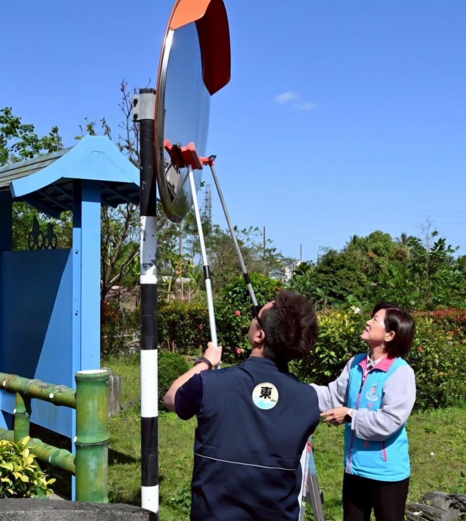 今(15)日下午,鄉長游淑貞率建設課相關人員,陪同JCI花蓮國際青年商會會長邱政翔及青年會員,前往七腳川溪沿線進行反光鏡擦拭公益行動,攜手提升路口視線清晰度,受到兩旁民眾圍觀,並豎起大拇指「喊讚!」一群青商有愛青年,創意「擦亮廣角世界」!守護鄉親安全回家的巷弄轉彎落角。