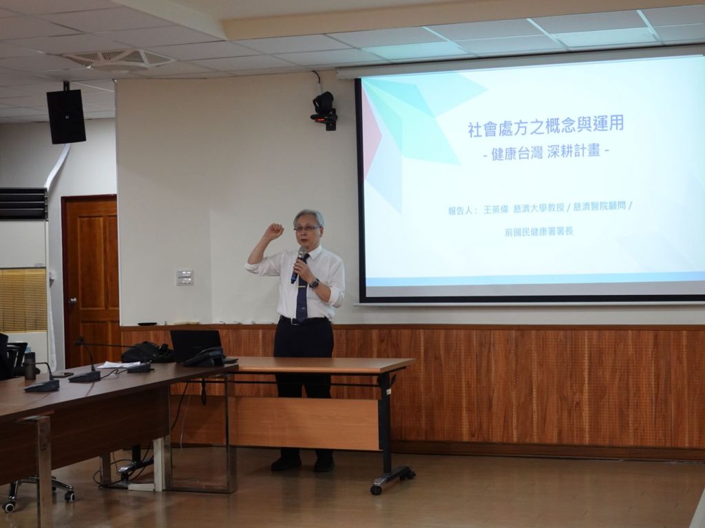 為推動以社區為核心的健康照護理念,花蓮市公所今18日邀請前國民健康署署長、現任慈濟大學教授暨慈濟醫院顧問王英偉,在市公所舉辦「社會處方之概念與運用」說明會,邀請各里里長參與,希望透過社區力量,建立更完善的健康支持網絡,打造健康共好的花蓮。
