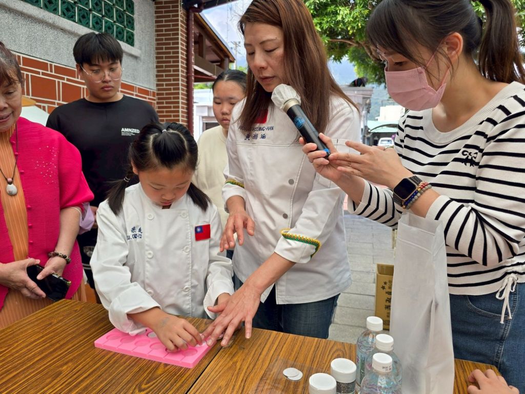 如何精準控制熬糖溫度?透過曾經出國比賽得獎的「金牌」小助手示範教學,隨後進行「分組實作體驗」,從調配糖液到最後的完美包裝,每一道工序都考驗著耐心能量。家長們紛紛表示,很感動看到孩子平時容易分心,此刻展現驚人的專注力。當糖漿凝結成晶瑩剔透的球體,現場無分老幼,每一張臉龐都綻放出自信光彩與驚喜笑容。