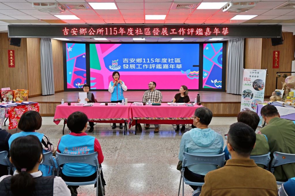 吉安鄉公所重視各社區發展協會的服務品質與創新能量,年年自辦鄉內社區發展工作評鑑。今年同樣由鄉長游淑貞擔任召集人,並邀請東華大學助理教授鄭期緯、慈濟大學教授高慧娟及牛犁社區交流協會執行秘書游雅帆擔任評審。此次共有17個社區發展協會參與評鑑,展現志工長期深耕地方的熱忱。評選成績揭曉,前三名分別為稻香、仁和及永安社區。