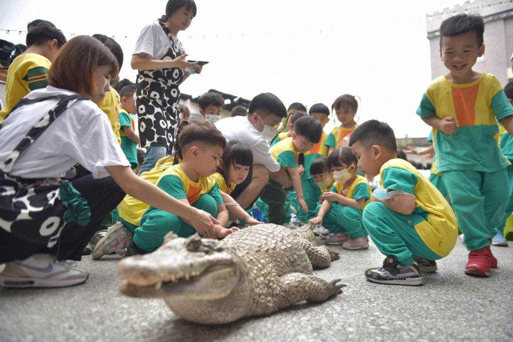 活動過程中,小朋友們從一開始的緊張與好奇,到逐漸鼓起勇氣近距離觀察甚至輕觸動物,現場不時傳出驚呼與笑聲。有的孩子看著鱷魚在地上慢慢爬行,露出既驚訝又開心的表情;當球蟒亮相時,更吸引全場目光,孩子們專注觀察,直呼「沒有想像中可怕」,展現滿滿的探索精神與勇氣。