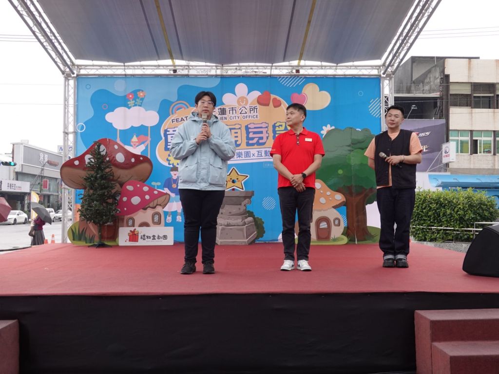 市長魏嘉彥致詞前先向大家說明為讓孩子擁有更安全及安心的遊戲環境,花蓮市公所近期進行多處兒童遊樂設施的修繕與優化作業,讓孩子少了許多遊玩的場所,請家長能夠體諒,並等待市公所為孩子打造更好的成長空間。對於今天的兒童節,他表示,此次與遠百合作舉辦「童心萌芽祭」,結合「玩中學、學中玩」的理念,不僅讓孩子在活動中激發想像力與觀察力,也讓親子之間有更多互動與情感連結。魏嘉彥強調,市公所將持續透過多元活動,讓花蓮成為適合孩子快樂成長的幸福城市。
