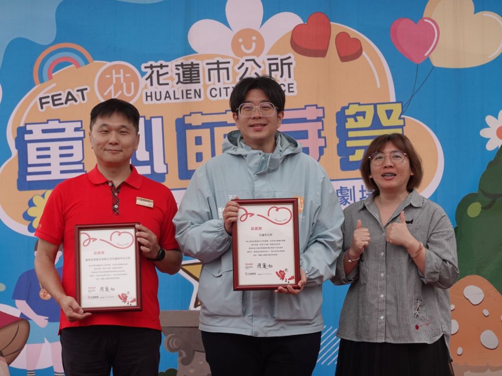 花蓮市立幼兒園以活潑可愛的舞蹈為活動揭開序幕,現場洋溢童趣與歡樂氣氛。隨後由禮物盒劇團演出互動式兒童劇「最棒的禮物」,以及小丑氣球互動秀,讓大小朋友沉浸在充滿想像力與笑聲的童話世界中。兒福聯盟花蓮工作站副主任葉瑋琳代表兒福頒發感謝狀給魏市長及王店長,感謝他們對兒福推展工作的支持。花蓮市民代表莊依婕、陳惠卿服務處秘書楊慈等人也到場和小朋友及家長同歡。