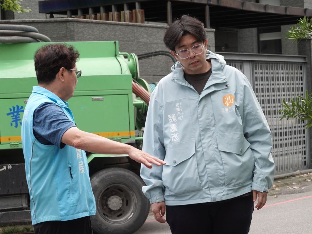 市長魏嘉彥昨8日下午偕同清潔隊長吳慶展前往國富28街實地視察清溝作業情形,關心施工進度與執行成果,並慰勞第一線清潔人員的辛勞。市長魏嘉彥表示,排水系統的暢通與否,攸關市民日常生活與公共安全,尤其每逢強降雨或颱風來襲,若溝渠淤積未即時清理,容易造成局部積水甚至淹水情形。因此,市公所自三月起即啟動清溝專案,透過事前盤點與分區規劃,優先針對歷年易積淹水路段辦理清疏作業,並視實際狀況滾動式調整執行順序,務求在汛期來臨前,全面提升排水系統的通暢度與應變能力。