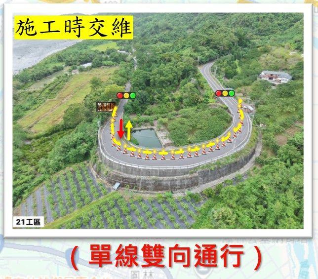 整體施工將依排定期程進行,並落實路況提早預告改道提醒,於工區範圍前後擺放改道預告牌面,提醒民眾欲行經施工路段,可提早改道或依現場改道預告牌面行駛,對於施工影響造成交通不便,也請大家諒解,待工程完工後,將提供友善安全的行車環境。