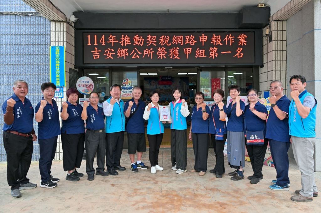 吉安鄉配合花蓮縣地方稅務局辦理「114年度推動地方稅網路申報工作計畫」,辦理契稅網路申報作業,全鄉共完成1,135件契稅案件,達到100%的申報率,服務績效亮眼,勇奪契稅網路申報評比甲組第一名佳績。日前地方稅務局公開表揚,肯定吉安鄉公所團隊兼顧便民服務,輔導鄉民善用網路申報作業,縣鄉協力提升地方稅收效益。