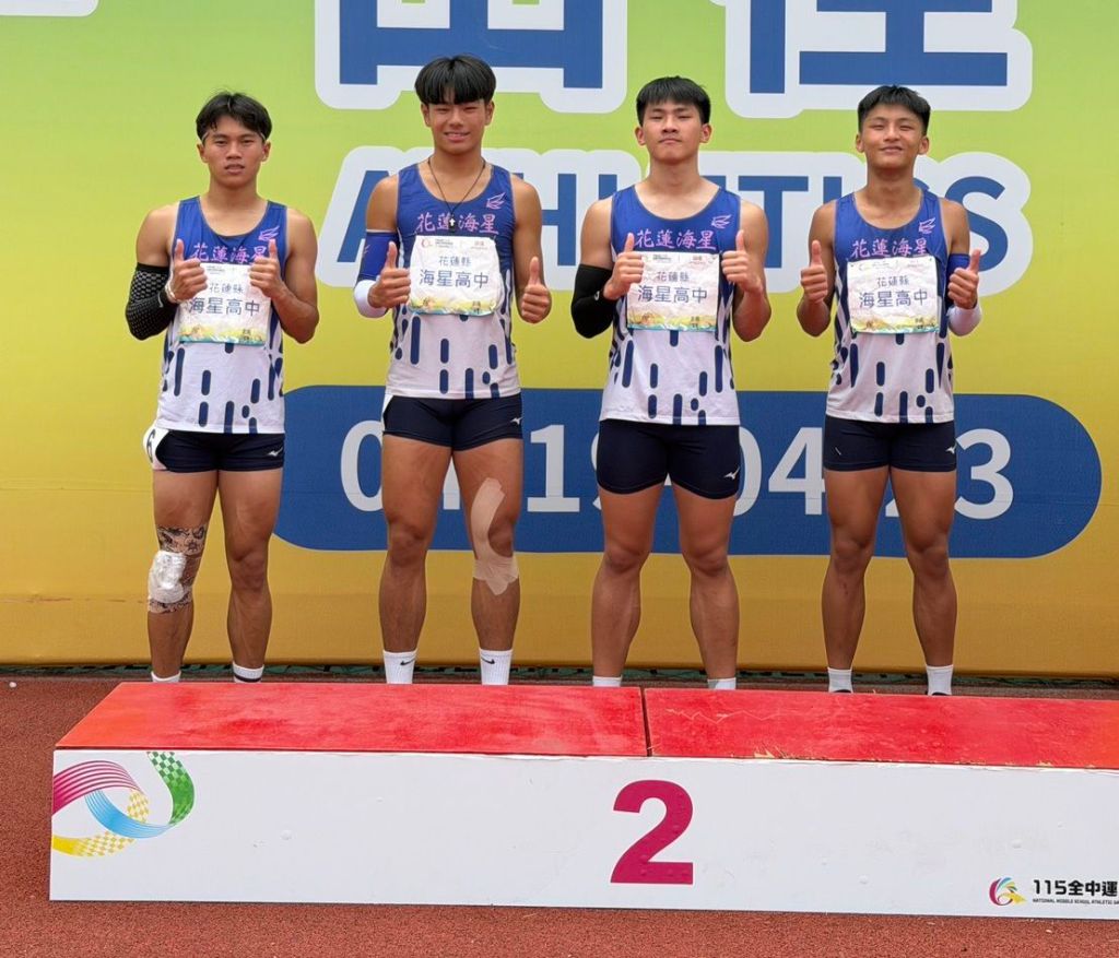 接力項目方面,海星高中在高女組及高男組4×400公尺接力雙雙奪得銀牌,分別由蘇凱恩、蘇若妍、趙珮岑、謝冠瑜,以及吳胤賢、蘇祥奕、噶帝少傌、伍毅軒組隊出賽,展現優異團隊默契與整體戰力。此外,宜昌國中徐唯宸於國男組200公尺奪得銅牌,海星高中謝冠瑜亦於高女組200公尺拿下銅牌,為花蓮再添佳績。
