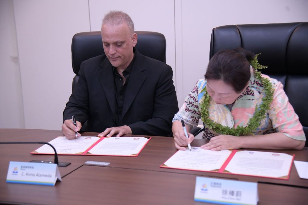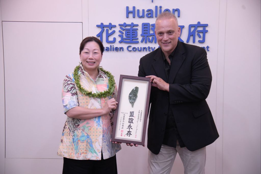 美國夏威夷州夏威夷郡(County of Hawai‘i)新任郡長 C. Kimo Alameda 昨(23)日率團抵達花蓮,展開姊妹城市交流行程。縣長徐榛蔚親自接見訪問團,雙方於會中共同簽署「姊妹市盟誼重申宣言」,針對防災韌性、永續觀光及青年交流等關鍵領域達成深化合作共識,展現跨越太平洋、歷時55年的深厚情誼。