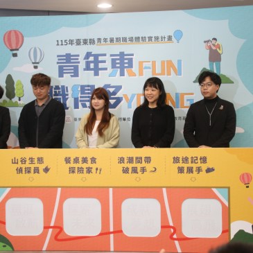 台灣即新聞 記者 楊金明/臺東報導 廣受好評的「臺東青年暑期職場體驗」計畫,今115年將再度熱烈展 … More 青年暑期職場體驗計畫啟動 200個職缺邀青年體驗慢經濟 饒慶鈴歡迎投遞履歷