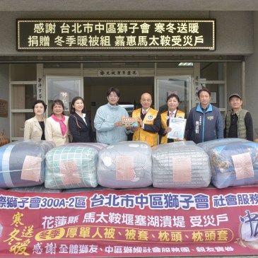 台灣即新聞 記者 楊金明/花蓮報導 國際獅子會300A-2區台北市中區獅子會關懷花蓮災後重建,日前 … More 獅子會寒冬送暖馬太鞍受災戶 花蓮市公所協助轉贈冬被
