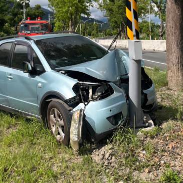 自小客自撞電桿 四人輕傷送醫無大礙 關山警籲行車專注安全